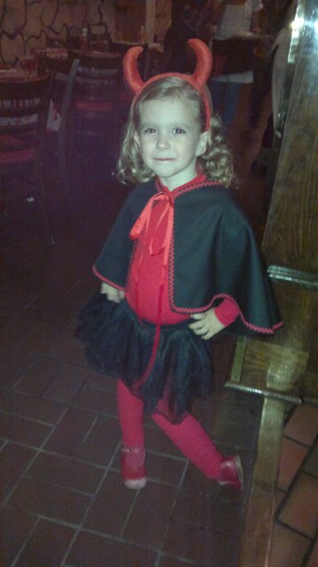 Ya queda poco para Halloween y queremos daros alguna idea para que los niños vayan disfrazados, que les encanta y a nosotros no nos cueste mucho dinero. Un disfraz de demonio con unos leotardos rojos y jersey rojo (también puede ser azul marino, negro, morado…) y compramos una diadema de cuernitos en cualquier bazar qué son muy económicas. Luego si queremos añadir algo seguro que todas tenemos alguna falda de tul de algún disfraz o incluso algun tipo de capa. Pintamos un poco la cara y listos para la noche de Halloween.